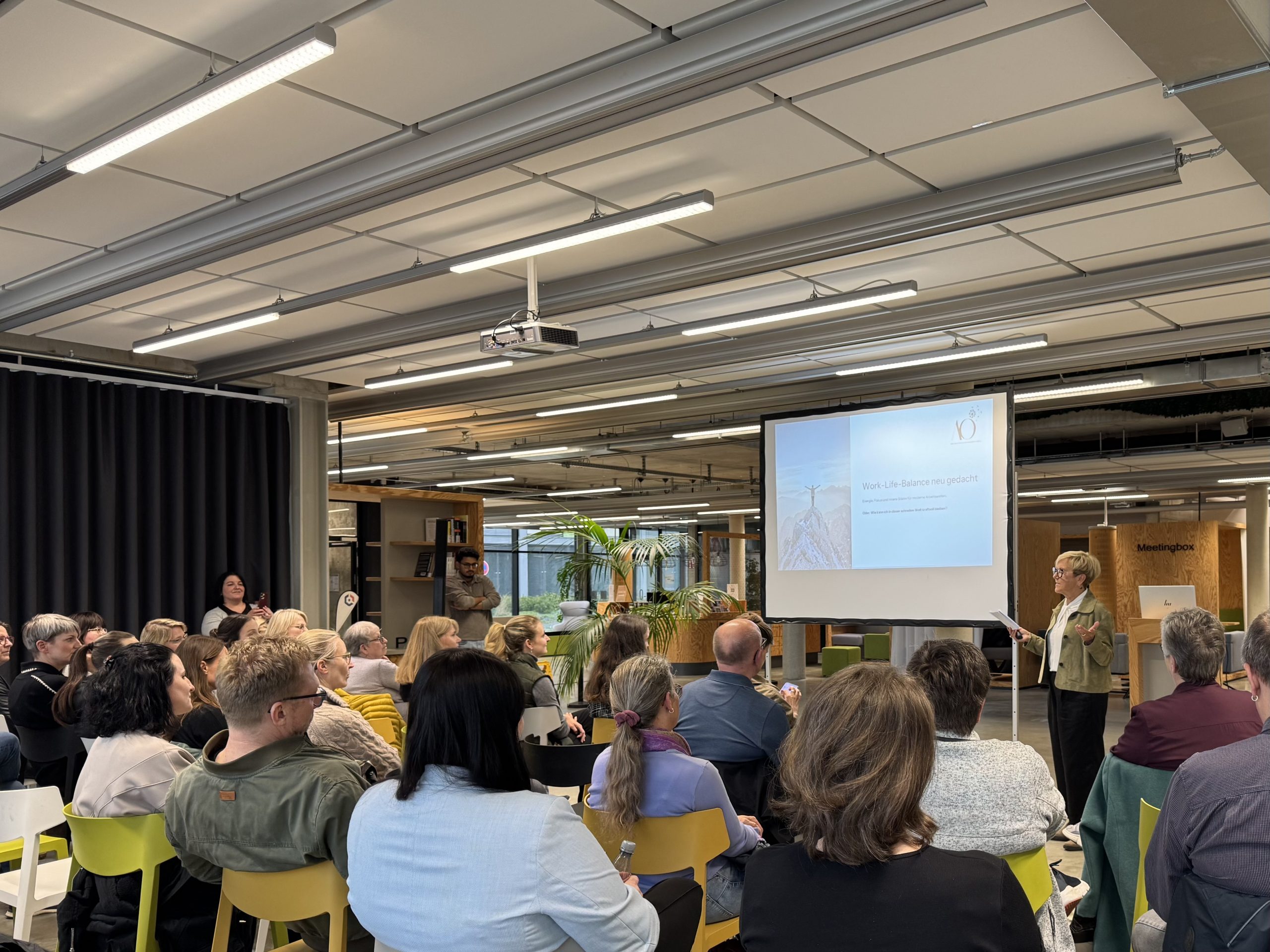 Im Zentrum stand die Frage, was „Work-Life-Balance“ für jeden Einzelnen bedeutet: Nicht der reine Ausgleich zwischen Arbeit und Freizeit, sondern das persönliche Gleichgewicht – auch im Arbeitsalltag – ist hier entscheidend. Sie appellierte daher an die mentale und psychische Gesundheit der Teilnehmenden. Ihr Fazit: Es geht nicht darum, weniger zu arbeiten, sondern vor allem gesünder zu arbeiten.
