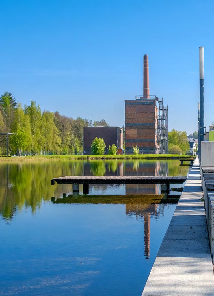 Hinter dem Auenpark liegt das Naturfreibad der Stadt: Hier ist Platz für Volleyball, Boccia, Picknick und natürlich zum Schwimmen und Abkühlen – eine große Portion Urlaubsgefühl.